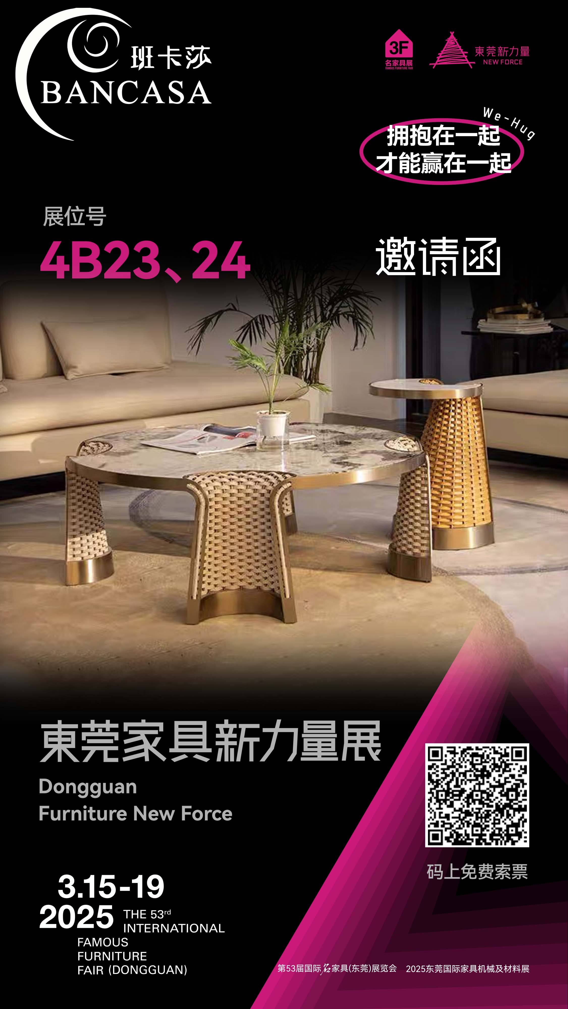东莞家具新力量展将于2025年3月15日-19日举行,地址在广东现代国际展览中心四号馆(2楼)402馆 ,班卡莎在4B23和4B24展位欢迎大家来参观。